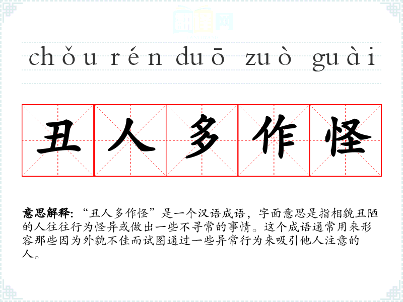 - chǒu rén duō zuò guài丑人多作怪