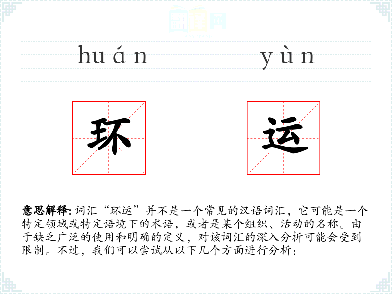 由于“环运”不是一个标准词汇,对其的理解和应用需要具体的语境支持。在语言学*和表达中,了解词汇的具体含义和使用背景是非常重要的。