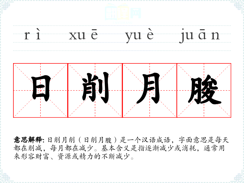 日削月削(日削月朘)是一个汉语成语,字面意思是每天都在削减,每月都在减少。基本含义是指逐渐减少或消耗,通常用来形容财富、资源或精力的不断减少。