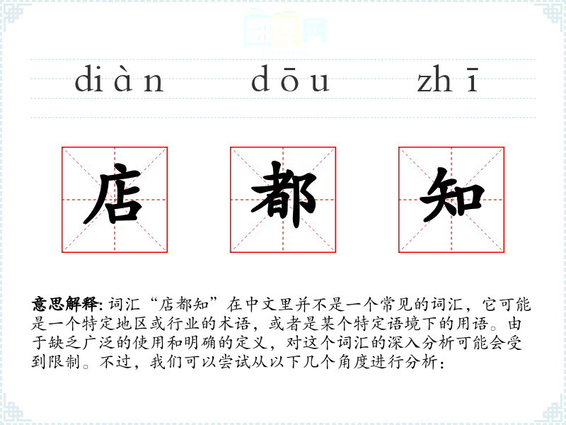 由于“店都知”不是一个标准词汇,我们对它的理解受到限制。在语言学习和表达中,我们应该关注那些有明确定义和广泛使用的词汇,以便更好地进行沟通和交流。