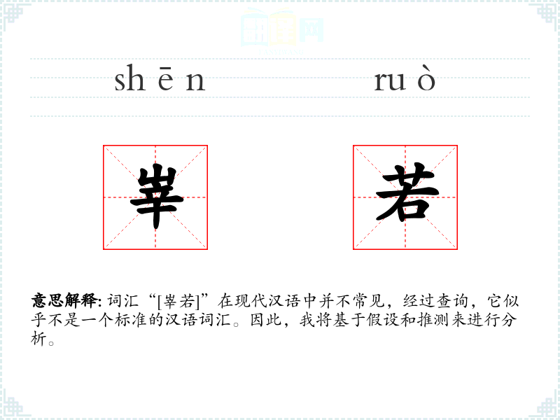 词汇“[峷若]”在现代汉语中并不常见,经过查询,它似乎不是一个标准的汉语词汇。因此,我将基于假设和推测来进行分析。