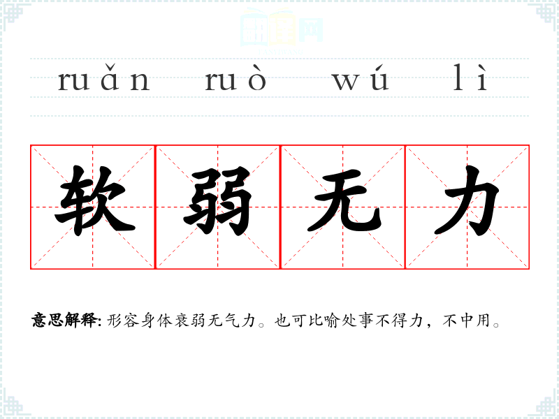 形容身体衰弱无气力。也可比喻处事不得力,不中用。