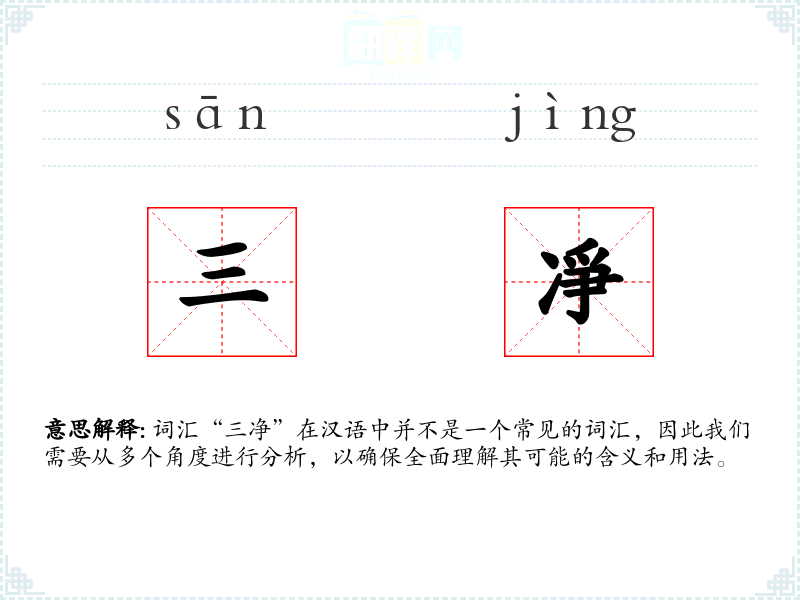 词汇“三净”在汉语中并不是一个常见的词汇,因此我们需要从多个角度进行分析,以确保全面理解其可能的含义和用法。