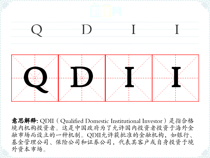 - 反义词:QFII(Qualified Foreign Institutional Investor),即合格境外机构投资者,是与QDII相对的概念,允许外国投资者投资于**境内市场。
