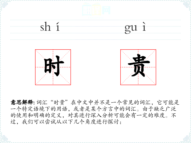 综上所述,由于“时贵”不是一个标准词汇,我们无法对其进行深入的分析和探讨。如果“时贵”是在某个特定语境下出现的词汇,那么它的含义和用法可能需要根据该语境进行具体的分析和理解。