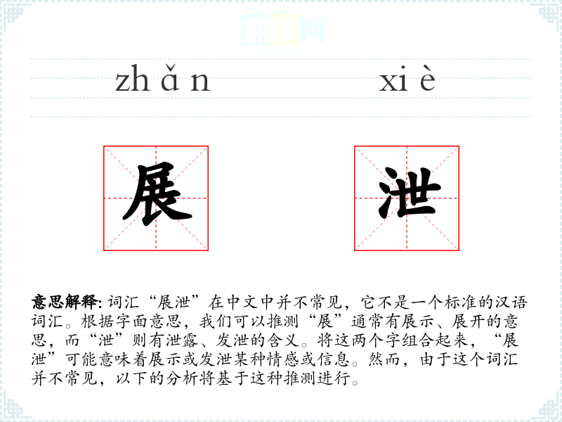 “展泄”可能指的是将内心的情感或秘密公开展示或发泄出来,可能是出于宣泄情绪或分享信息的目的。