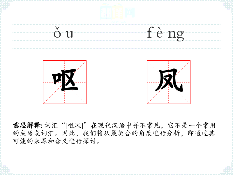 词汇“[呕凤]”在现代汉语中并不常见,它不是一个常用的成语或词汇。因此,我们将从最契合的角度进行分析,即通过其可能的来源和含义进行探讨。