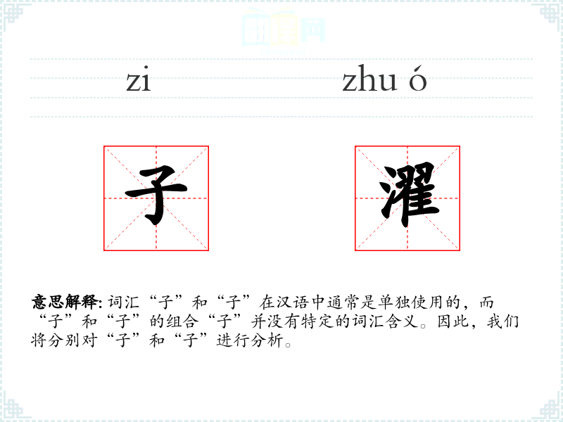 词汇“子”和“子”在汉语中通常是单独使用的,而“子”和“子”的组合“子”并没有特定的词汇含义。因此,我们将分别对“子”和“子”进行分析。