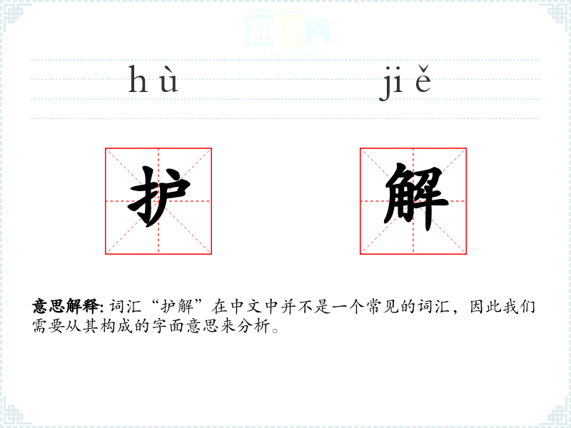 词汇“护解”在中文中并不是一个常见的词汇,因此我们需要从其构成的字面意思来分析。