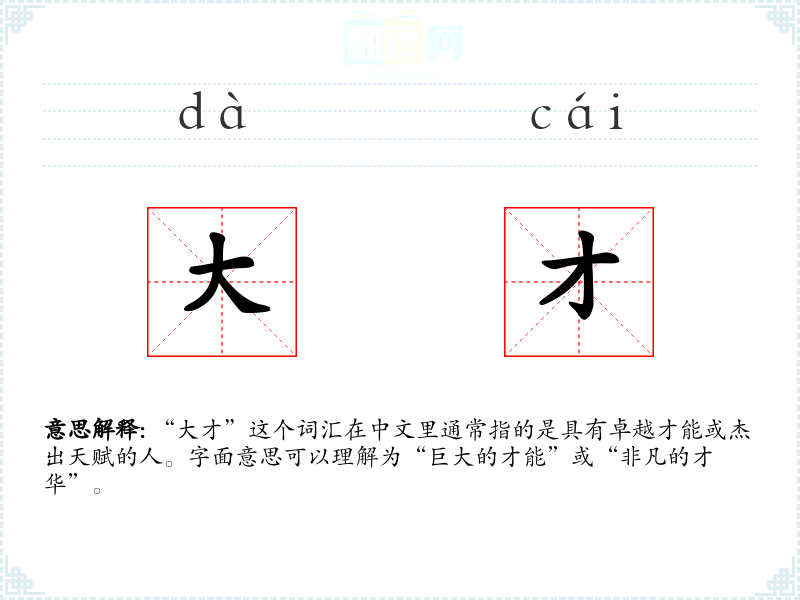 “大才”这个词汇在中文里通常指的是具有卓越才能或杰出天赋的人。字面意思可以理解为“巨大的才能”或“非凡的才华”。