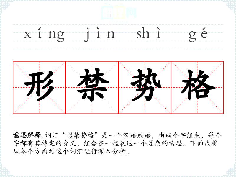 词汇“形禁势格”是一个汉语成语,由四个字组成,每个字都有其特定的含义,组合在一起表达一个复杂的意思。下面我将从各个方面对这个词汇进行深入分析。