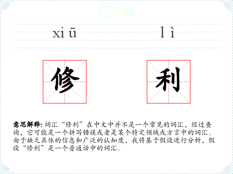 由于“修利”不是一个通用词汇,它在不同语言或文化中的对应词汇可能不存在。