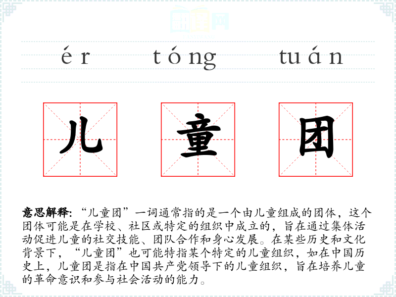 通过对“儿童团”的深入学,我认识到这个词汇不仅是一个简单的名词,它还承载着丰富的历史、文化和情感内涵。在语言学和表达中,理解和运用这样的词汇能够丰富我们的语言表达,增强沟通的深度和广度。