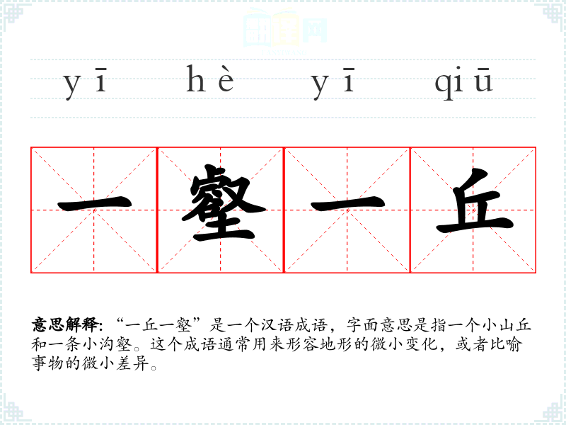 “一丘一壑”是一个汉语成语,字面意思是指一个小山丘和一条小沟壑。这个成语通常用来形容地形的微小变化,或者比喻事物的微小差异。