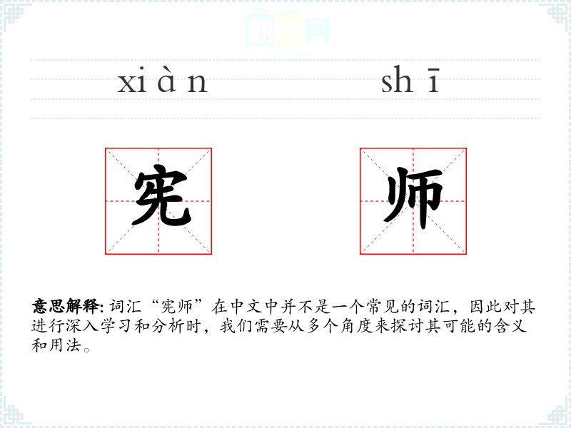 词汇“宪师”在中文中并不是一个常见的词汇,因此对其进行深入学习和分析时,我们需要从多个角度来探讨其可能的含义和用法。