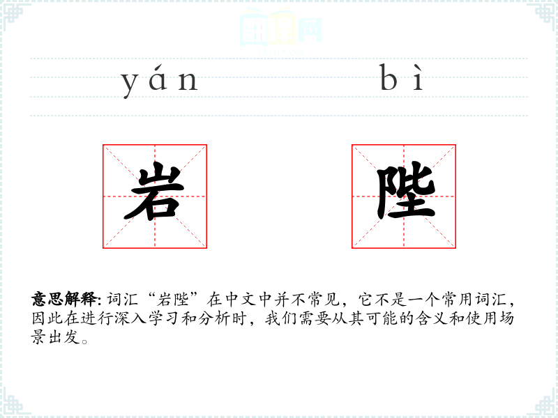 词汇“岩陛”在中文中并不常见,它不是一个常用词汇,因此在进行深入学*和分析时,我们需要从其可能的含义和使用场景出发。