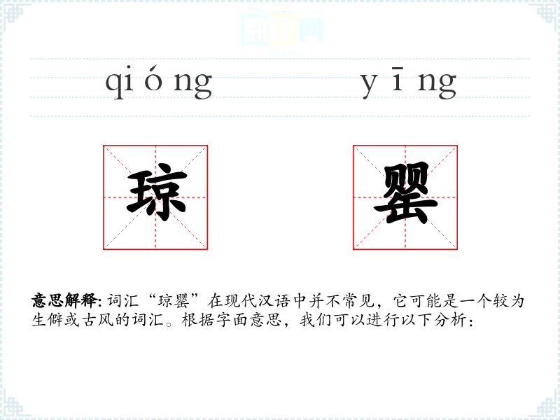 词汇“琼罂”在现代汉语中并不常见,它可能是一个较为生僻或古风的词汇。根据字面意思,我们可以进行以下分析: