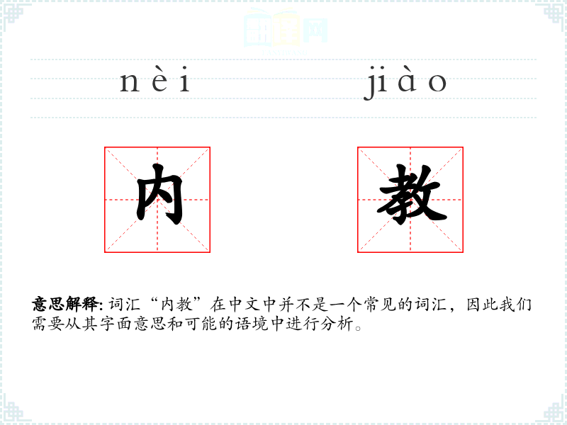 词汇“内教”在中文中并不是一个常见的词汇,因此我们需要从其字面意思和可能的语境中进行分析。