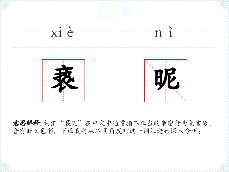 词汇“亵昵”在中文中通常指不正当的亲密行为或言语,含有贬义色彩。下面我将从不同角度对这一词汇进行深入分析:
