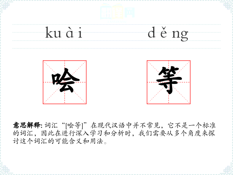 词汇“[哙等]”在现代汉语中并不常见,它不是一个标准的词汇,因此在进行深入学习和分析时,我们需要从多个角度来探讨这个词汇的可能含义和用法。