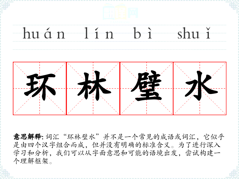 由于“环林璧水”不是一个标准词汇,它在不同语境下的使用可能非常有限。在文学作品中,它可能被用来形容一个环境优美、自然景观宜人的地方。