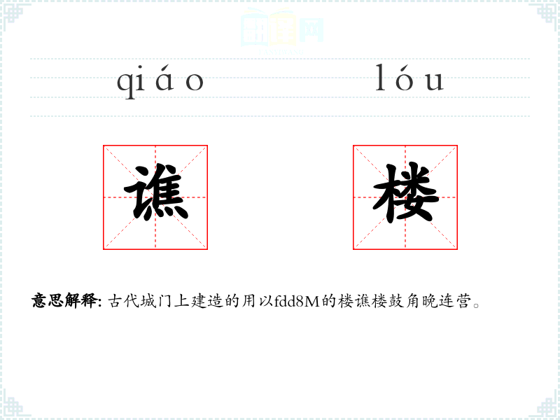 古代城门上建造的用以fdd8M的楼谯楼鼓角晚连营。