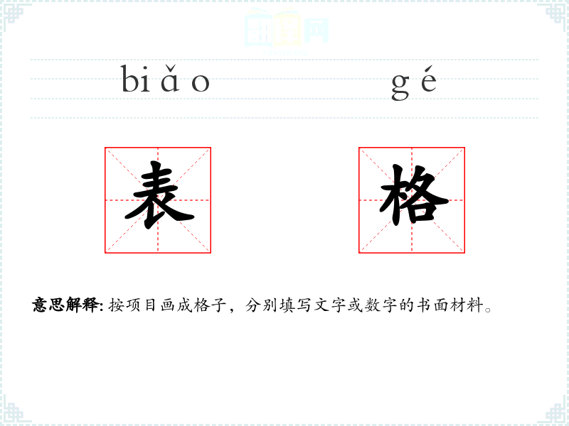 表格的分字解释
