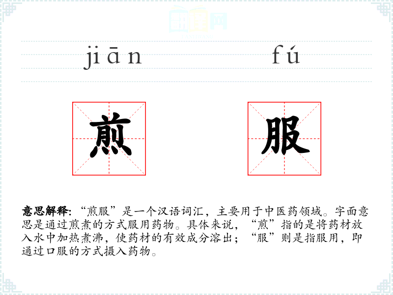 - 同义词:煎煮、煎药、煎汤