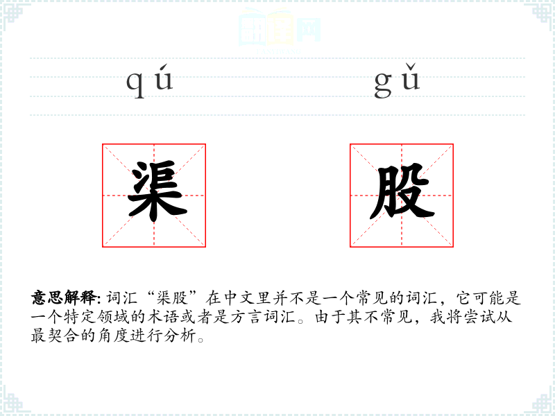 词汇“渠股”在中文里并不是一个常见的词汇,它可能是一个特定领域的术语或者是方言词汇。由于其不常见,我将尝试从最契合的角度进行分析。