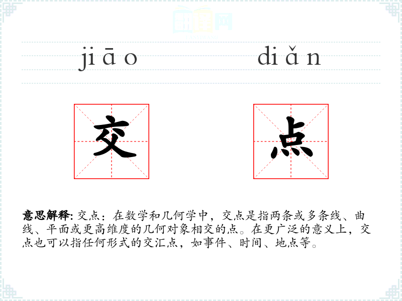 "交点"的意思解释、交点是什么意思由翻译网汉语词典查词提供。