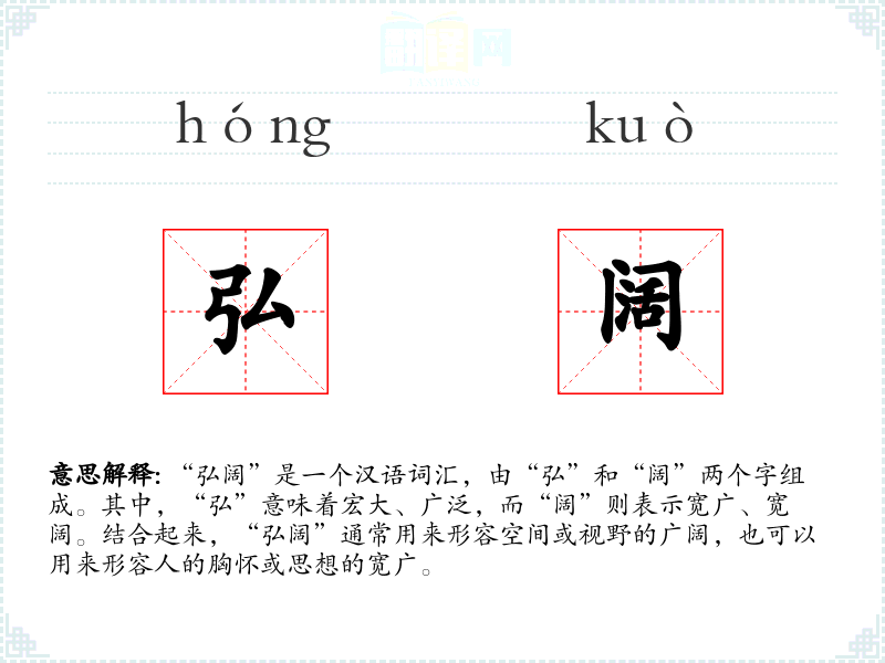 “弘阔”这个词汇在古代汉语中就已经存在,其字面意义和现代汉语中的用法基本一致。随着时间的推移,这个词汇在文学和日常语言中的使用逐渐增多,成为描述宽广空间和开阔心胸的常用词汇。