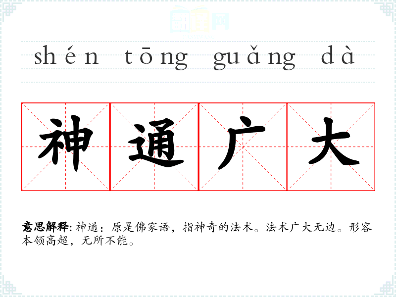 神通:原是佛家语,指神奇的法术。法术广大无边。形容本领高超,
