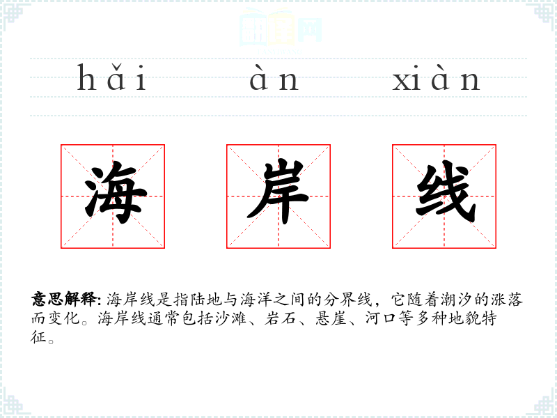 "海岸线"的意思解释、海岸线是什么意思由翻译网汉语词典查词提供。