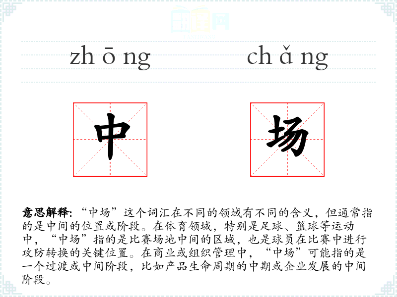 “中场”这个词汇的词源较为直接,由“中”和“场”两个字组成。在古代汉语中,“中”表示中间,而“场”最初指的是平坦的空地,后来扩展到指代各种场地,如市场、战场等。在现代汉语中,“中场”主要用于体育领域,后来逐渐扩展到商业和管理领域。