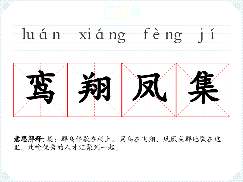 集:群鸟停歇在树上。鸾鸟在飞翔,凤凰成群地歇在这里。比喻优秀的人才汇聚到一起。
