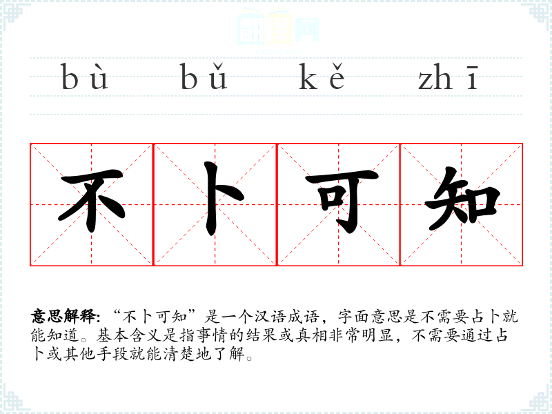 - bù bǔ kě zhī不卜可知