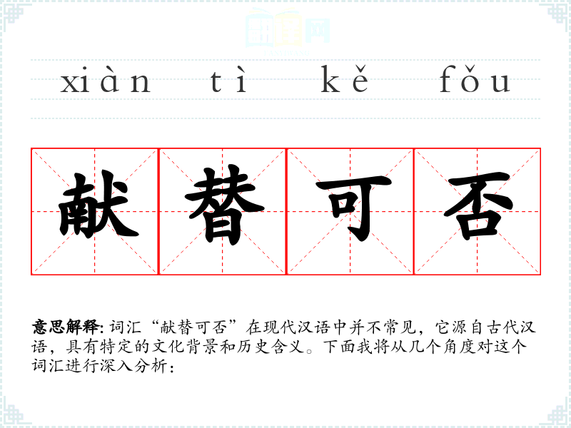 词汇“献替可否”在现代汉语中并不常见,它源自古代汉语,具有特定的文化背景和历史含义。下面我将从几个角度对这个词汇进行深入分析: