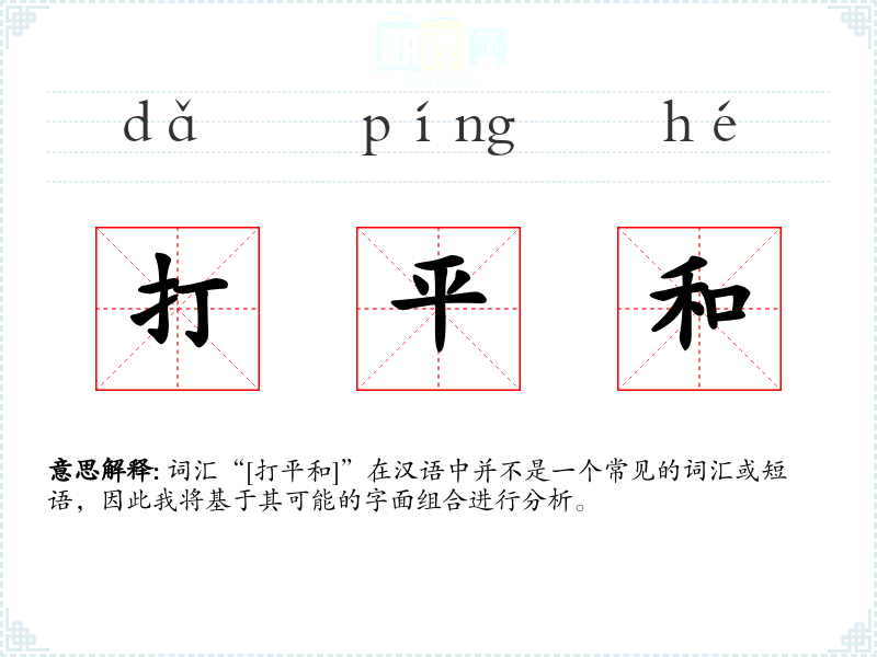 由于“打平和”不是一个标准词汇,它在不同语境下的使用可能非常有限。在某些特定的方言或俚语中,它可能有特定的含义,但这需要具体的语境来确定。