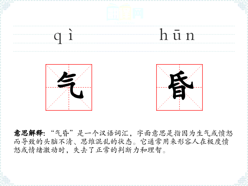 - 视觉联想:想象一个人因为愤怒而面部通红,眼神迷离,这正是“气昏”的视觉表现。