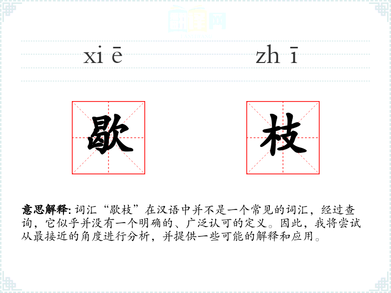 词汇“歇枝”在汉语中并不是一个常见的词汇,经过查询,它似乎并没有一个明确的、广泛认可的定义。因此,我将尝试从最接近的角度进行分析,并提供一些可能的解释和应用。