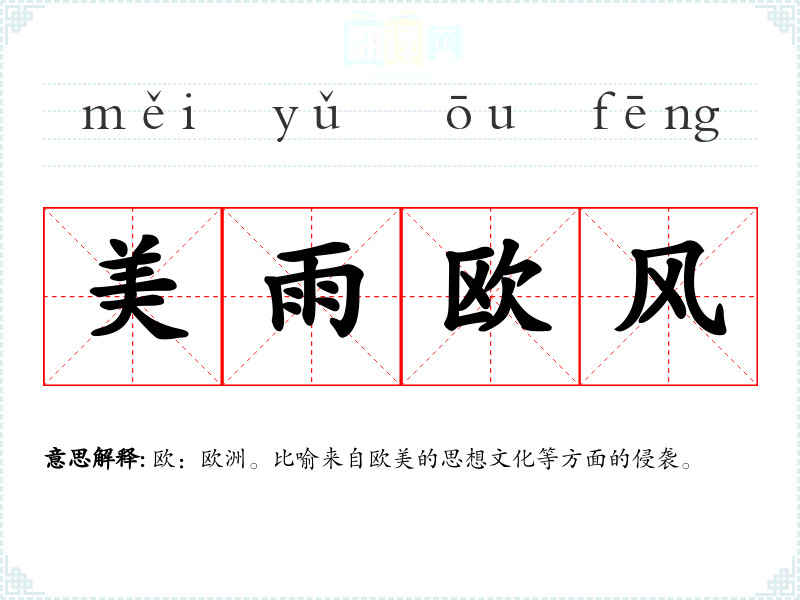 欧:欧洲。比喻来自欧美的思想文化等方面的侵袭。