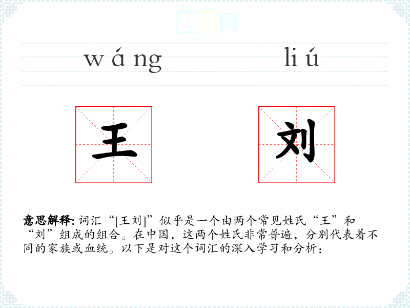 - 总结理解:“王刘”作为一个词汇,虽然没有特定的含义,但它承载了**姓氏文化的丰富内涵。