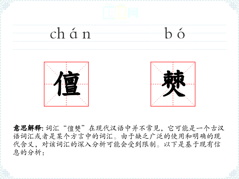 由于“儃僰”不是一个常见的现代汉语词汇,我们无法提供一个确切的基本定义。它可能是由两个汉字组合而成的词汇,每个字都有其独立的含义,但组合后的含义不明确。