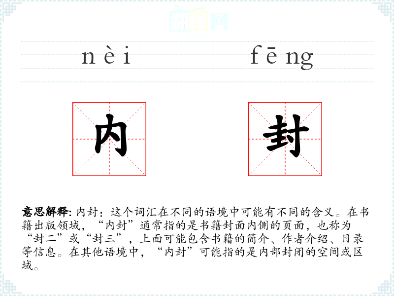 - 专业领域:在出版和印刷行业,“内封”是一个常用术语,指的是书籍的内部封面。