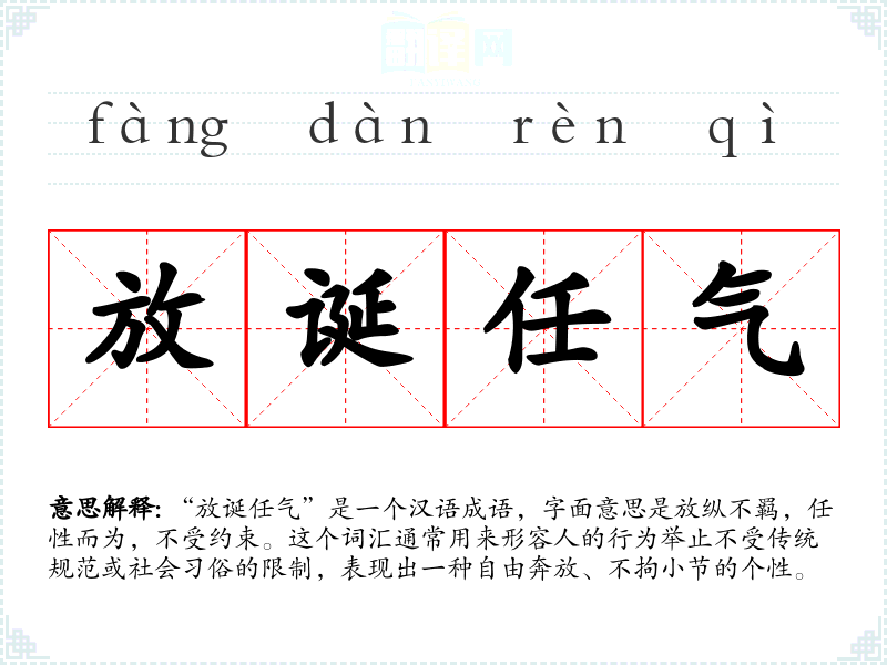 “放诞任气”这个成语的词源较为模糊,但其构成的单字“放”、“诞”、“任”、“气”在古代汉语中都有各自的意义,组合起来形成了这个成语。随着时间的推移,这个成语的含义和用法也有所演变,但其核心意义——放纵不羁、任性而为——保持不变。