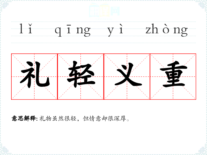"礼轻义重"的意思解释、礼轻义重是什么意思由翻译网汉语词典查词提供。