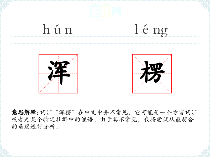 词汇“浑楞”在中文中并不常见,它可能是一个方言词汇或者是某个特定社群中的俚语。由于其不常见,我将尝试从最契合的角度进行分析。