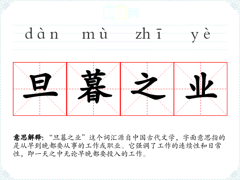 “旦暮之业”这个词汇源自**古代文学,字面意思指的是从早到晚都要从事的工作或职业。它强调了工作的连续性和日常性,即一天之中无论早晚都要投入的工作。