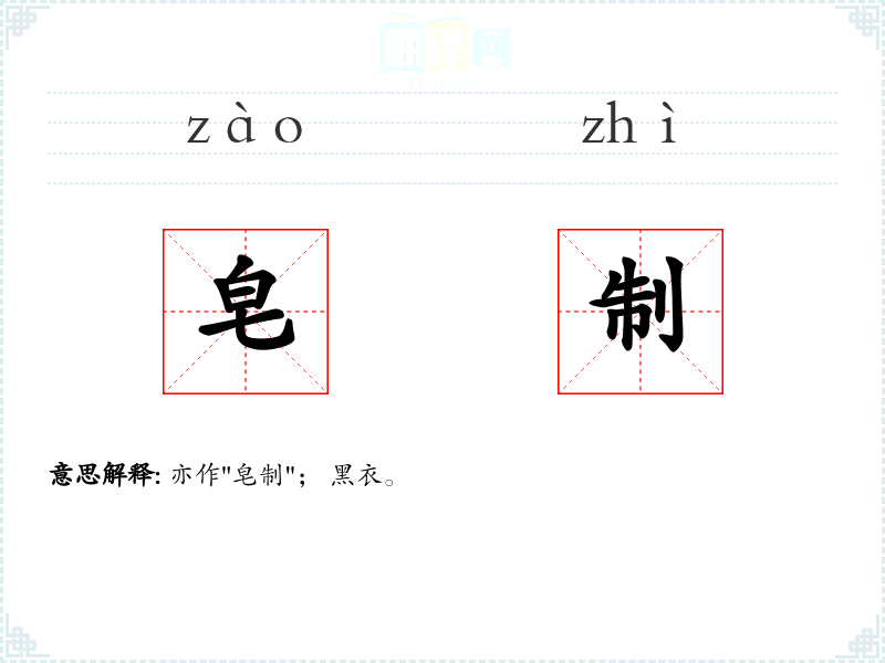 亦作"皂制"; 黑衣。