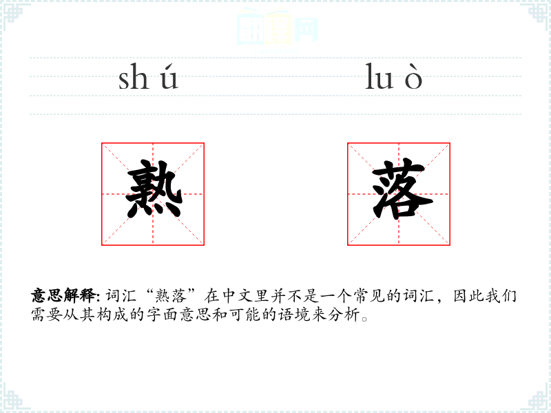 词汇“熟落”在中文里并不是一个常见的词汇,因此我们需要从其构成的字面意思和可能的语境来分析。
